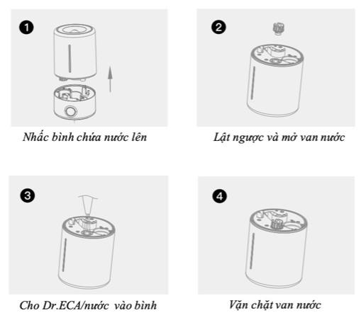 2. Cho Dr.ECA hoặc nước vào bình chứa